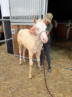Réjane (technicienne dentaire équin), que j'ai accompagnée lors de ses tournées de soins à l’occasion de mon stage découverte.